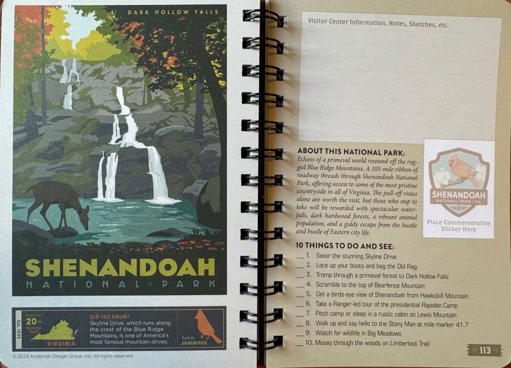 - A really neat “Adventure Guide” which actually has helpful facts about each park and a place to put a stamp – it’s a great combination of useful and keepsake-y (and small)
