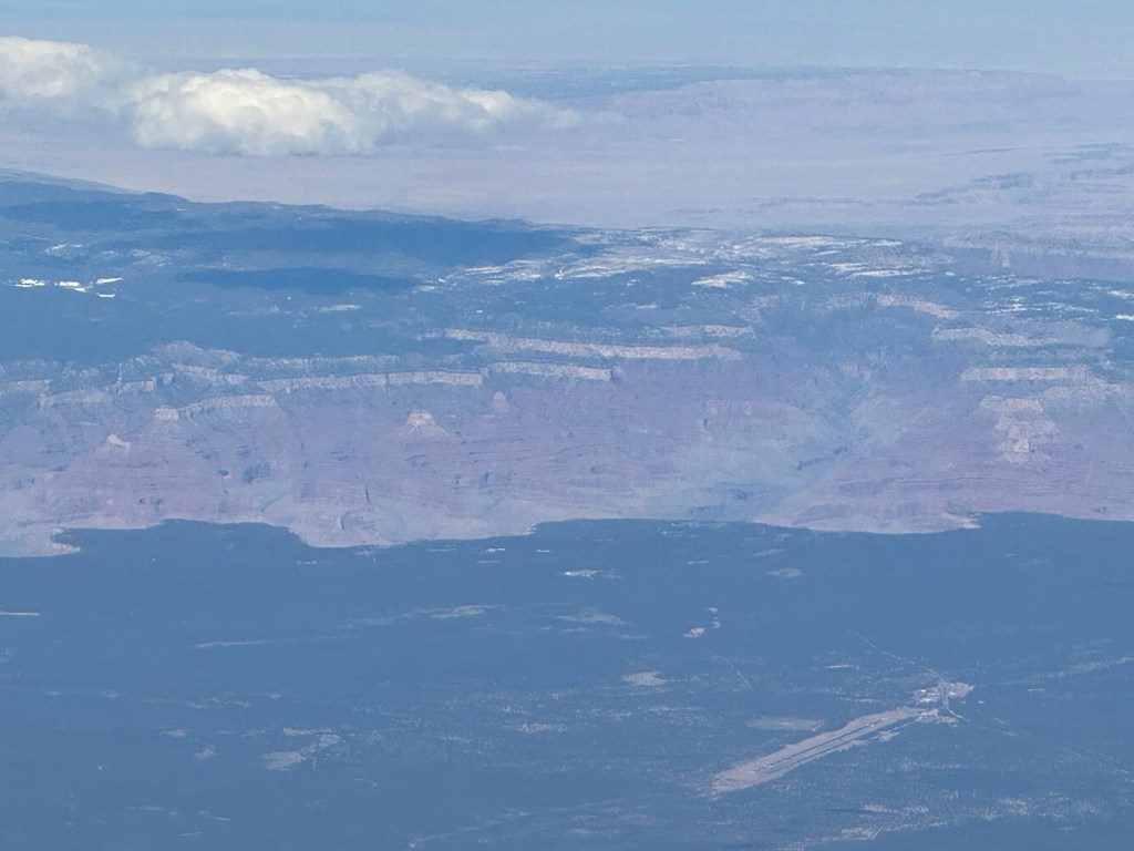 It’s not an amazing picture, but I did take it with an iPhone through the window of a moving airplane at about 35,000 feet so in context it’s not that bad. You can actually see the road that goes from Flagstaff to the South Rim in the lower right part of the pic. Hello, Grand Canyon, I’ll be back later for a much more in-depth visit!