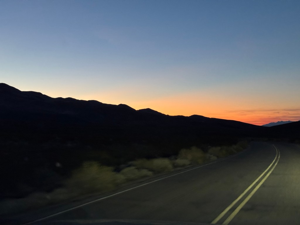 There is a 3-hour time difference between home and here, and by this point we’d been traveling all day and then some and we were fading fast. Just like the light. Death Valley National Park is an International Dark Sky Association “gold tier” dark park… and when the sun goes down it gets dark FAST.