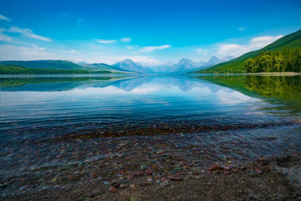- There are lakes! That iconic lake you see so many of pictures of, with the multicolored rocks and super still water – That’s Lake McDonald and it’s one of the main (most widely known) attractions in the park. Or the lakes with the crazy-blue looking water in all the stock photos? They’re right there in Glacier National Park. Here are a couple of stock examples: